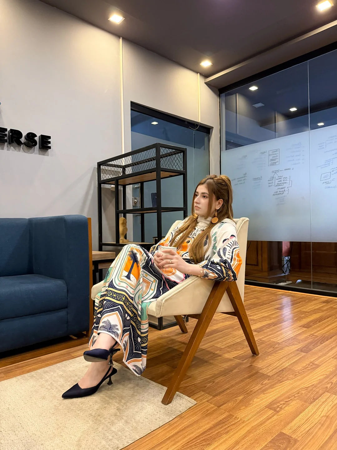 Step into winter elegance with the Palm Leaf Printed Maxi, beautifully tailored from Imported Marina (Premium Winter Fabric). The vibrant palm leaf print and flowy silhouette make it a perfect pick for both casual and semi-formal wear.